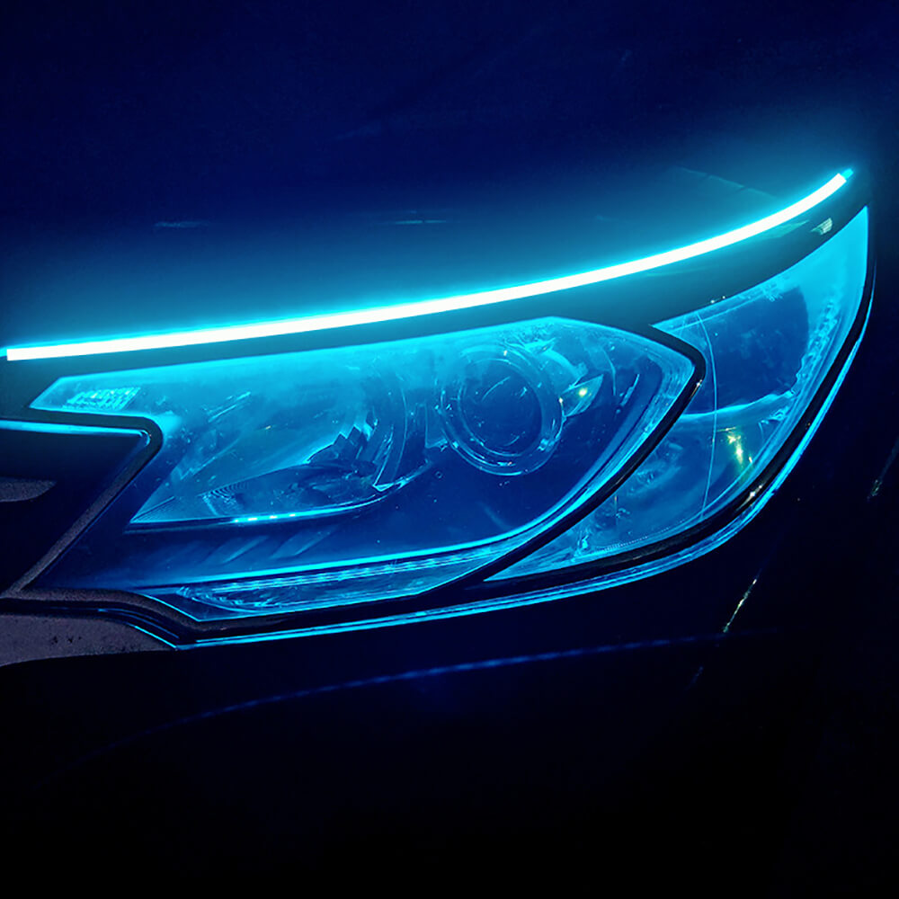 Гибкие дневные ходовые огни (ДХО автомобильные) ARtEK, 30 см выполнены в водонепроницаемом корпусе. Они легко крепятся к капоту автомобиля между фарами, снаружи фар. Светодиодные ДХО оснащены динамическими поворотниками. Сами светодиоды нанесены на силиконовую ленту, что делает фары гибкими. Диодная лента для фары не боится воды и светит ярко даже при ярком солнечном свете. Ленту можно использовать в широком температурном диапазоне от -40 градусов до +50 градусов. Крепится на прочное липкое основание, которое надежно держится даже при атмосферных осадках и после мытья. Для питания нужно 12В напряжения.
