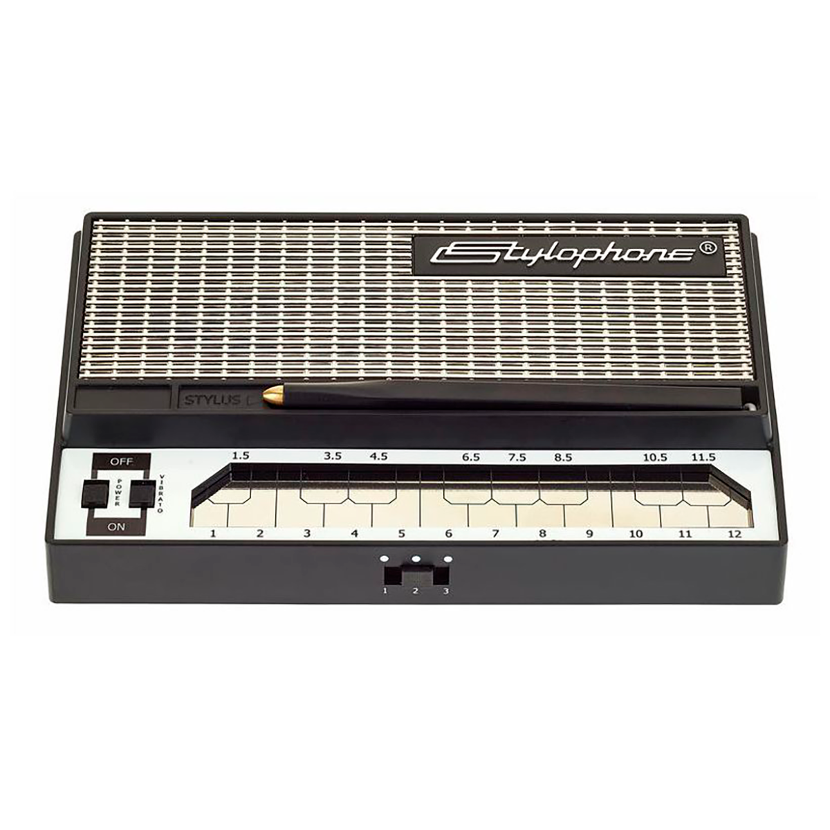 Stylophone S1 от Dübreq — это переиздание культового устройства со стилусом, которое впервые было представлено в 1967 году и выпускалось до 1975 года. Дизайн определенно соответствует стилю того времени. Три переключаемые октавы и переключаемый эффект вибрато — вот и все, что нужно, чтобы играть с полутораоктавной клавиатурой из металлической фольги и специальным стилусом на кабеле- главное - получать удовольствие. Если провести стилусом по нескольким контактам, не опуская его, ноты автоматически воспроизводятся как глиссандо. Инструмент издает звуки через встроенный динамик и аудиовыход.